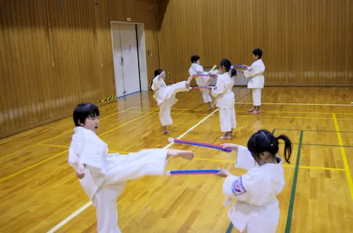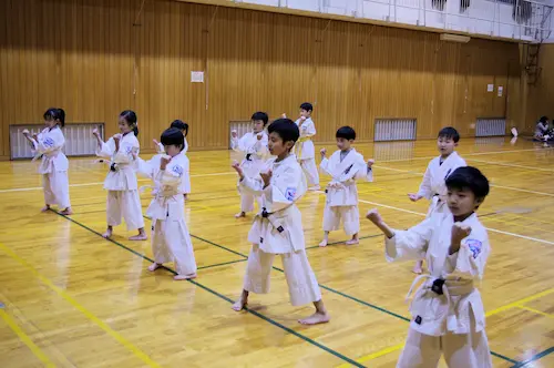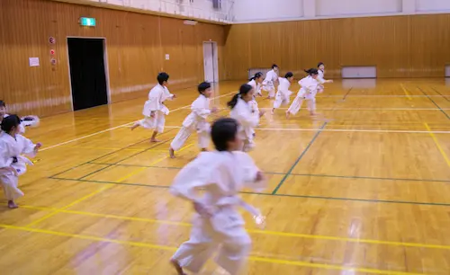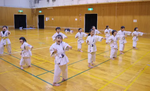 幼年部は4歳~小学3年生までを対象としたクラスで、空手の強さ以上に挨拶や返事といった基本的な礼儀や礼節、そして空手の動作の基本を楽しみながら学び稽古していくことを目的としています。